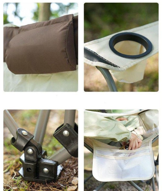 게다가 옆에 컵홀더랑 주머니까지 있어요! 간단한 물건도 여기다 쏙 넣고, 커피나 맥주 한잔 딱 두면 끝. 캠핑할 때 뭘 더 원하겠어요? 🌄