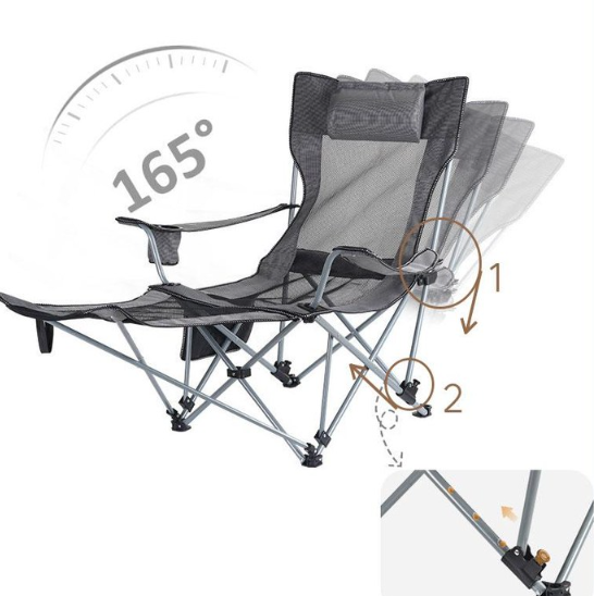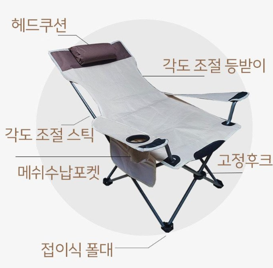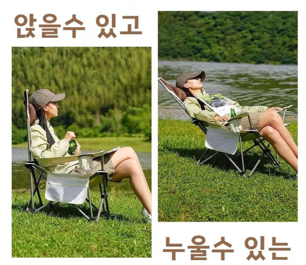 이 의자가요, 그냥 평범한 캠핑 의자가 아니에요. 각도를 조절할 수 있어서 앉았다가 누워버릴 수도 있고, 게다가 발받침까지 있어서 다리 쭉 뻗고 누우면 완전 릴렉스~ 거기다 목베개도 있어서 자칫하면 캠핑장에서 바로 꿈나라로 갈 뻔했어요! 🛌