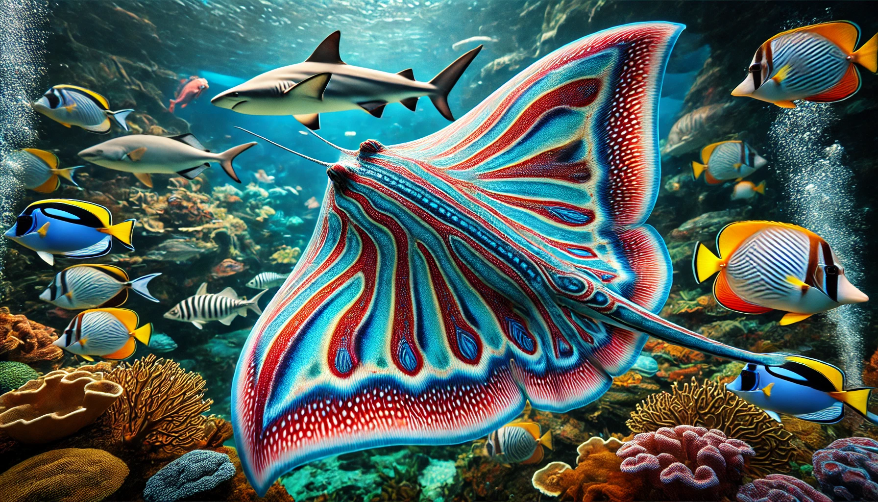 상어, 가오리, 다양한 열대어가 서식하는 이 거대한 탱크는 수족관의 중심입니다. - 해양 포유류 전시회
