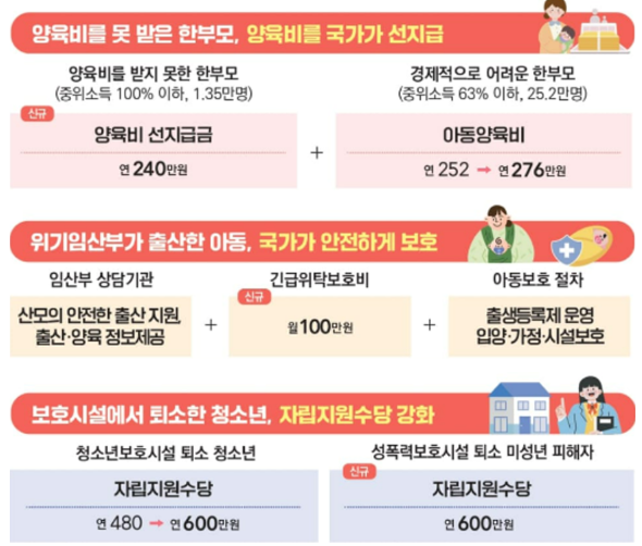 취약 계층의 경제적 안정과 복지를 강화하기 위해, 다음과 같은 정책들이 포함되었습니다.